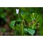 꽃 : 5-6월에 원줄기 윗부분의 엽액에서 길이 5-10cm의 화경이 나와 백색 또는 연한 자줏빛이 도는 꽃이 옆을 향해 달리며 화경 윗부분에 선상의 포가 달리고 백색꽃의 순판에 자주색 줄이 있다. 꽃받침잎은 녹색이며 길이 7-10mm이고 부속체는 반원형으로서 가장자리가 밋밋하거나 끝이 오그라든다. 꽃잎은 길이 8-10mm로서 측판 안쪽에 털이 있으며 거(距)는 길이 3-4mm이다.
