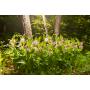 | 꽃 | 꽃은 5~6월에 피고 지름 3cm로서 백색 또는 연한 적색이며 향기가 있고 2년전의 원줄기 끝에 1-2개가 달리며 밑부분에 비늘같은 것이 약간 달린다. 중앙부의 꽃받침잎은 길이 22-25mm 나비 5-7mm로서 피침형 예두이고 측열편은 옆으로 퍼지며 꽃잎은 중앙부의 꽃받침과 길이가 비슷하거나 약간 짧다. 순판은 약간 짧고 뒤쪽에 짧은 거(距)가 있으며 밑부분으로 암술을 양쪽에서 감싼다. 꽃색은 많은 변이가 있다. |