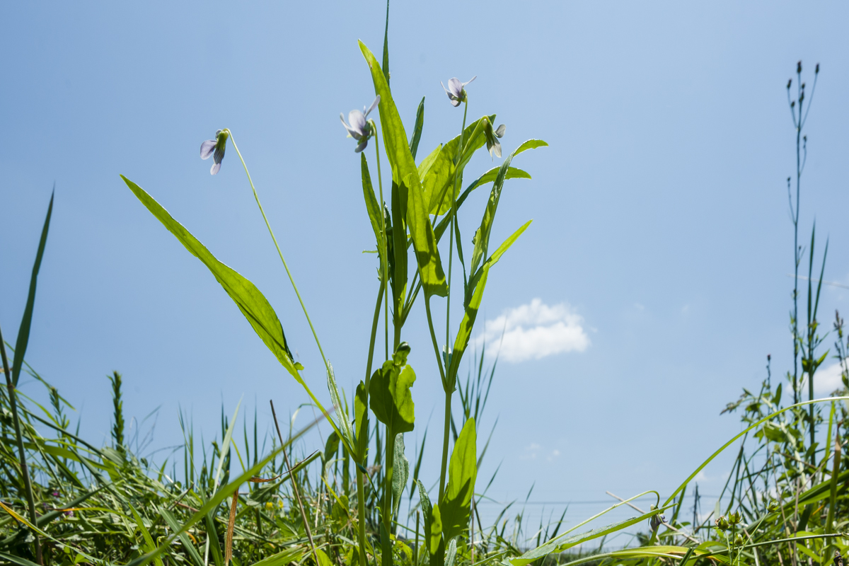 잎 : 잎은 뿌리잎과 줄기 밑부분의 잎은 개화시 쓰러지며 밑부분의 잎은 중앙부의 잎보다 길고 창모양이며 잎자루가 길다. 중앙부의 잎은 선상 창모양 또는 선형이고 끝이 뾰족하며 길이 4-9cm, 폭 6-10mm로서 밑부분이 좁아져서 잎자루처럼 보인다. 앞쪽잎에는 털이 없으나 뒤쪽에는 선점과 털이 있으며 가장자리가 뒤로 말린다.