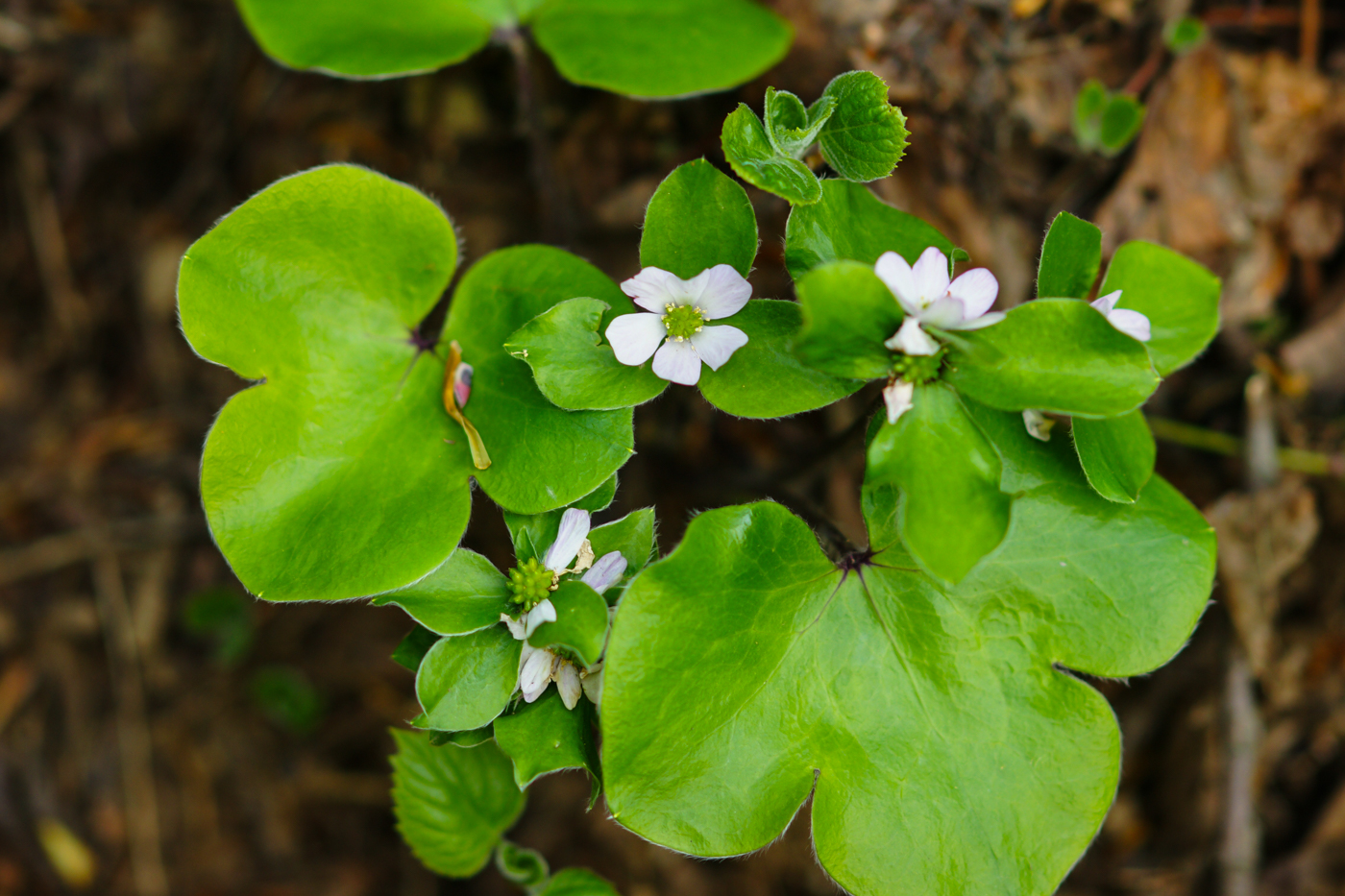 잎 : 잎은 2-3장이 밑부분에 밀생하며 난상 심장형이고 녹색이며 밑부분이 깊은 심장저이고 끝이 뾰족하며 길이와 폭이 각 2-3cm이지만 과시(果時)에는 5cm에 달하고 가장자리에 파상의 톱니가 있으며 표면 또는 뒷면에 털이 있거나 없다. 엽병은 길이 3-10cm이고 윗부분에 털이 있거나 없다.