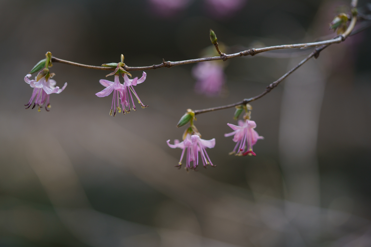 | 꽃 | 꽃은 잎보다 먼저 피고 길이 1-1.2cm로서 연한 홍색이며 전년지 끝에 2개씩 달리고 화경은 길이 2-3mm로서 잔털과 선점이 있으며 포에 털이 있고 소포가 없다. 화관은 양순이 깊이 갈라지지만 상하의 구별이 뚜렷하지 않으며 통부는 짧고 밑부분이 넓으며 꽃받침은 털이 없고 열편이 불규칙하며 가장자리에 선모가 있다. 수술은 꽃잎보다 약간 길고 수술대는 연한 홍색이며 꽃밥은 자주색이고 자방은 서로 합쳐지며 털이 없다. 꽃은 3-4월에 잎보다 먼저 핀다. |