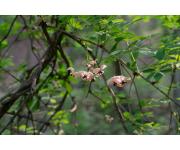 꽃 : 꽃은 수시로 피지만 흔히 5월경에 피며 홍자색 또는 연녹색이고 새가지 끝에 1개 또는 몇개가 산방상으로 달린다. 꽃받침통은 타원형이며 털이 없고 꽃받침잎은 피침형으로서 끝이 길게 뾰족해지며 연녹색이고 안쪽과 가장자리에 털이 있으며 꽃잎은 도란상 원형으로서 밑부분이 백색이다. 수술은 황색이고 많으며 암술대는 떨어지고 꽃받침통 밖으로 나온다.