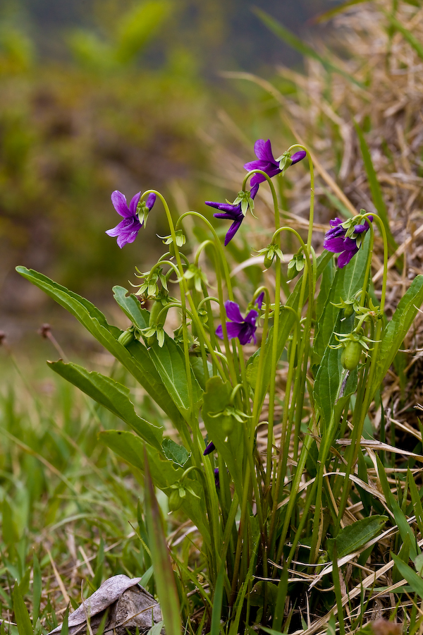 잎 : 뿌리에서 긴 엽병이 있는 잎이 모여난다. 잎은 피침형이며 둔두이고 절저 또는 약간 심장저에 가까우며 길이 3-8cm 폭 1-2.5cm로서 가장자리에 얕고 둔한 톱니가 있다. 꽃이 핀 다음에 자라는 잎은 난상 삼각형이고 심장저로 되며 윗부분에 약간 뚜렷하지 않는 파상의 톱니가 있고 엽병은 길이 3-15cm로서 윗부분에 날개가 있다.