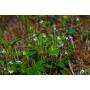 꽃 : 꽃은 6~7월에 피며 지름 1-1.2cm로서 백색 바탕에 녹색이 돌고 화경(花莖)은 길이 10-20cm로서 간혹 1개의 인엽이 있으며 2-4개의 꽃이 달린다. 꽃받침잎은 반원형 또는 낮은 삼각형이고 둔두 또는 원두이며 포는 침상 피침형이고 길이 1-2mm로서 소화경보다 짧다.