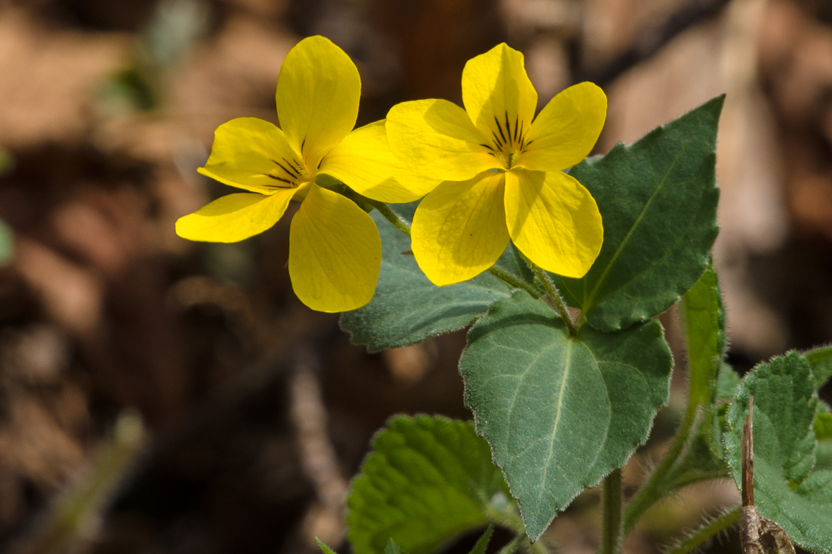 잎 : 잎은 3-4개이며 엽병은 길이 2-10cm이지만 윗부분의 것은 짧고 날개가 없으며 털이 없다. 탁엽은 녹색이며 좁은 난형 또는 넓은 피침형이고 길이 3-5mm로서 연모가 다소 있으며 끝이 뾰족하고 가장자리는 밋밋하다. 엽신은 신심형이고 길이 1-2cm 폭 1.5-3.5cm로서 털이 산생하며 가장자리에 둔한 톱니가 있다.
