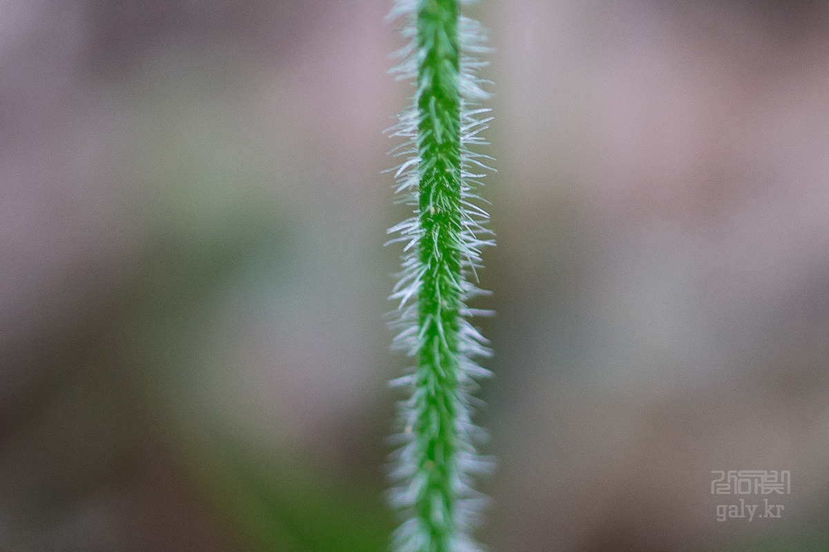 줄기 : 높이 10-15cm이고 전체에 털이 많으며 줄기는 곧게 서고 밑을 향한 백색 털이 밀생한다.