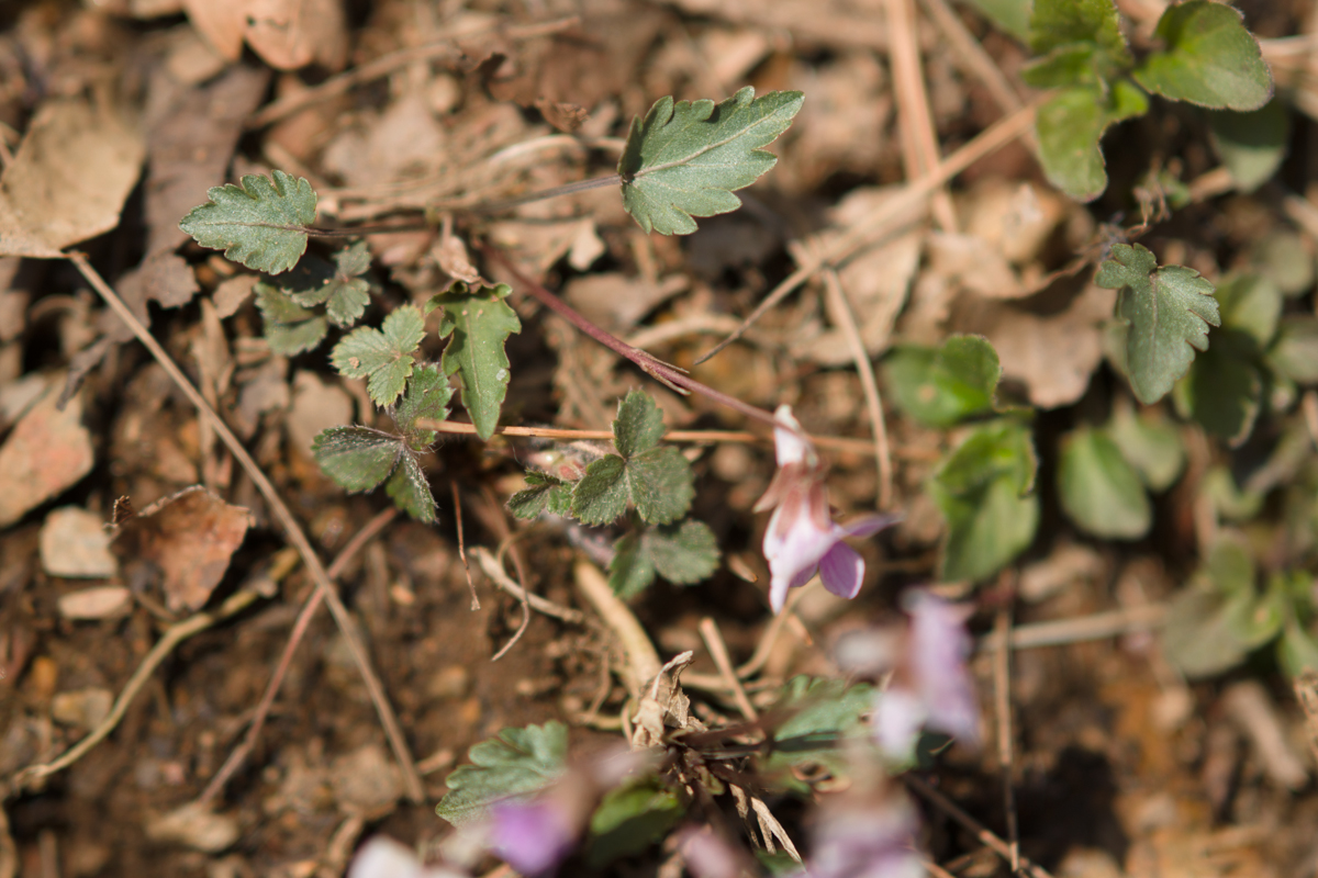 꽃 : 꽃은 액생하고 연한 자주색이며 꽃받침잎은 피침형이고 길이 5-8mm이며 부속체는 반원형으로서 둔한 톱니가 있거나 밋밋하고 꽃잎은 길이 15-18mm로서 털이 없으며 거는 색이 연하고 길이 6-8mm이다. 꽃이 진 다음 화경이 짧은 폐쇄화가 생겨서 결실한다.