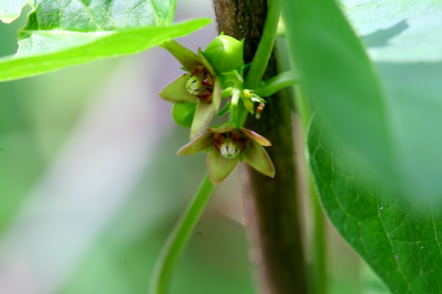 유사종 ▶덩굴박주가리(C. nipponicum): 전체에 곱슬곱슬한 털이 있으며 잎은 막질이고 가장자리는 밋밋하다. 꽃은 갈색이다.