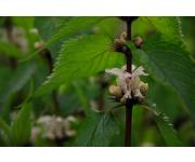 잎 : 잎은 대생하고 길이 2-4cm 폭 1.5-2.5cm로서 삼각상 넓은 난형이며 질이 얇고 끝이 둔하며 밑부분이 다소 심장저이고 가장자리에 톱니가 있으며 양면에 털이 있고 엽병은 길이 1~2cm이다.