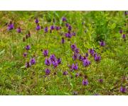 꽃 : 꽃은 자색으로 5~6월에 피며 한쪽으로 치우쳐서 2줄로 달리고 정생하는 총상화서에 촘촘히 난다. 꽃받침잎은 순형이고 길이 3mm에서 6-7mm로 자라며 위쪽에 원반상의 부속체가 있고 겉에 털이 있으며 포는 柄(병)이 있으며 난형이다. 화관은 밑부분이 꼬부라져서 곧게 서며 길이 18-22mm이고 긴 통상 순형으로 상순은 투구모양 하순은 넓으며 앞으로 나오고 자주색 반점이 있다. 수술은 4개로서 그 중 2개가 길다.