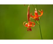 꽃 : 꽃은 7-8월에 피고 원줄기끝과 바로 그 측지끝에 1-3개의 꽃이 위를 향해 곧추 달리며 지름 4cm정도이다. 화피열편은 피침형이고 길이 4-5㎝로서 황적색 바탕에 자주색 반점이 밀포하며 갈고리모양으로 약간 뒤로 젖혀진다.