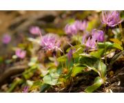 꽃 : 꽃은 4월에 피고 1-2개가 달리며 짧은 화경(花梗)이 있고 길이 4-5mm로서 백색이거나 붉은 빛이 돈다. 포는 얇은 막질이며 난형이고 길이 6-7mm로서 갈라지지 않는다. 꽃잎은 6개로서 긴 타원형 또는 좁은 난형이며 둔두이고 암술머리는 3개이다.