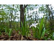 꽃 : 꽃은 4~5월에 황색으로 피꽃은 4~5월에 황색으로 피고 화경은 곧추 서있고 끝에 2개의 포가 1개의 꽃을 싸는 정생화서이며 꽃의 지름은 2~3.8cm이고 포는 선상 피침형으로 길이 5.3~8cm이다. 외화피는 장 도란형 또는 주걱모양으로 길이 2~2.7cm이고 끝이 파진다. 내화피편은 도피침형으로 길이 1.5~2.3cm이고 곧추 선다. 암술대는 갈라지고 자방의 횡단면은 3각상이다.